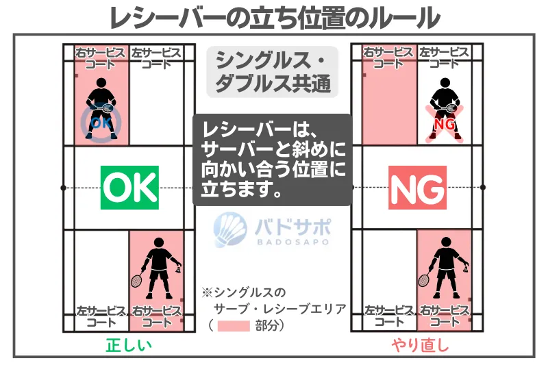 レシーバーは、サーバーと斜めに向かい合う位置に立ちます