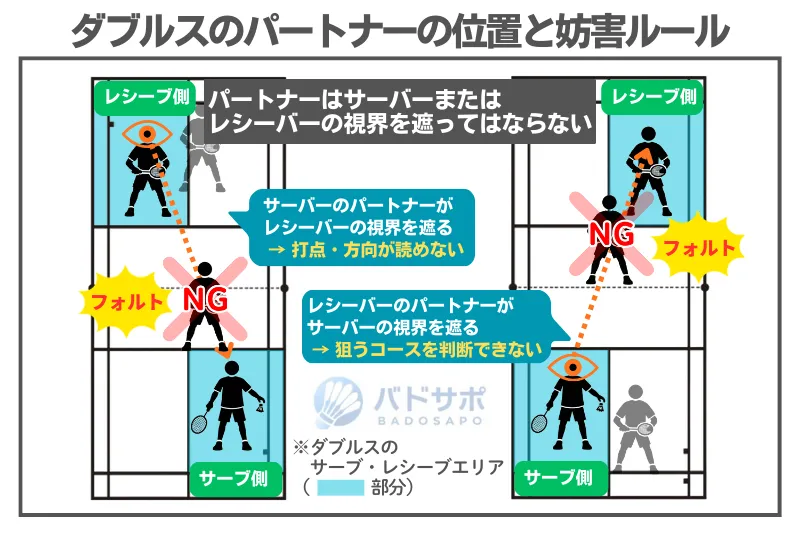 サーバーとレシーバーの間に入り視界を遮る位置に立つことは禁止されています。
