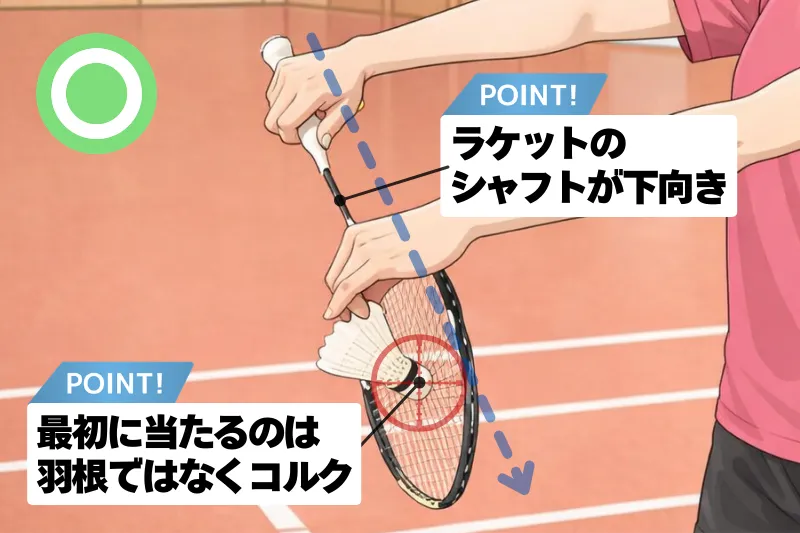 コルクに最初に当たっていれば、その後に羽へ触れても問題ありません。